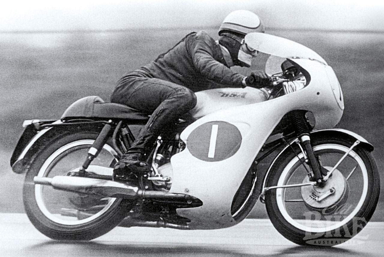 The entry list was headed by World Champion Mike Hailwood, who had been recruited for three starts – the 350cc race on Tom Kirby’s 7R AJS, the 500cc race on the works 500-4 MV Agusta, and the 15-lap Production Race on a BSA Lightning Clubman also entered by Kirby and, as permitted under the British regulations, fitted with a Dolphin fairing and an alloy fuel tank. It also had twin pipes and mufflers, rather than the Siamese/single muffler of the version sold in the shops and a full-width front hub, which was fitted to the US models. English Production Racing rules were far more elastic than what was used in Australasia.