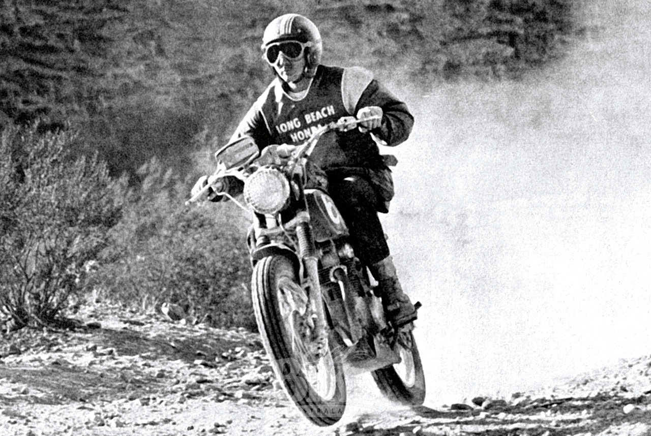 The CL350 received a massive publicity boost when Long Beach Honda entered one for the prestigious and punishing Baja 1000. At least, it purported to be a CL350, but was probably a CB fitted with a larger tank from the CB450, a fork brace, after-market exhaust system, Ceriani forks, Koni rear shocks, reupholstered seat, lighter mudguards and a sump guard. Nevertheless, the Honda, ridden by Larry Berquist and Gary Preston, demolished the motorcycle and car entry to win the event outright, with a record time of 20 hours 38 minutes for the thrash from Ensenada to La Paz, despite losing 10 minutes when the Honda ran out of fuel.