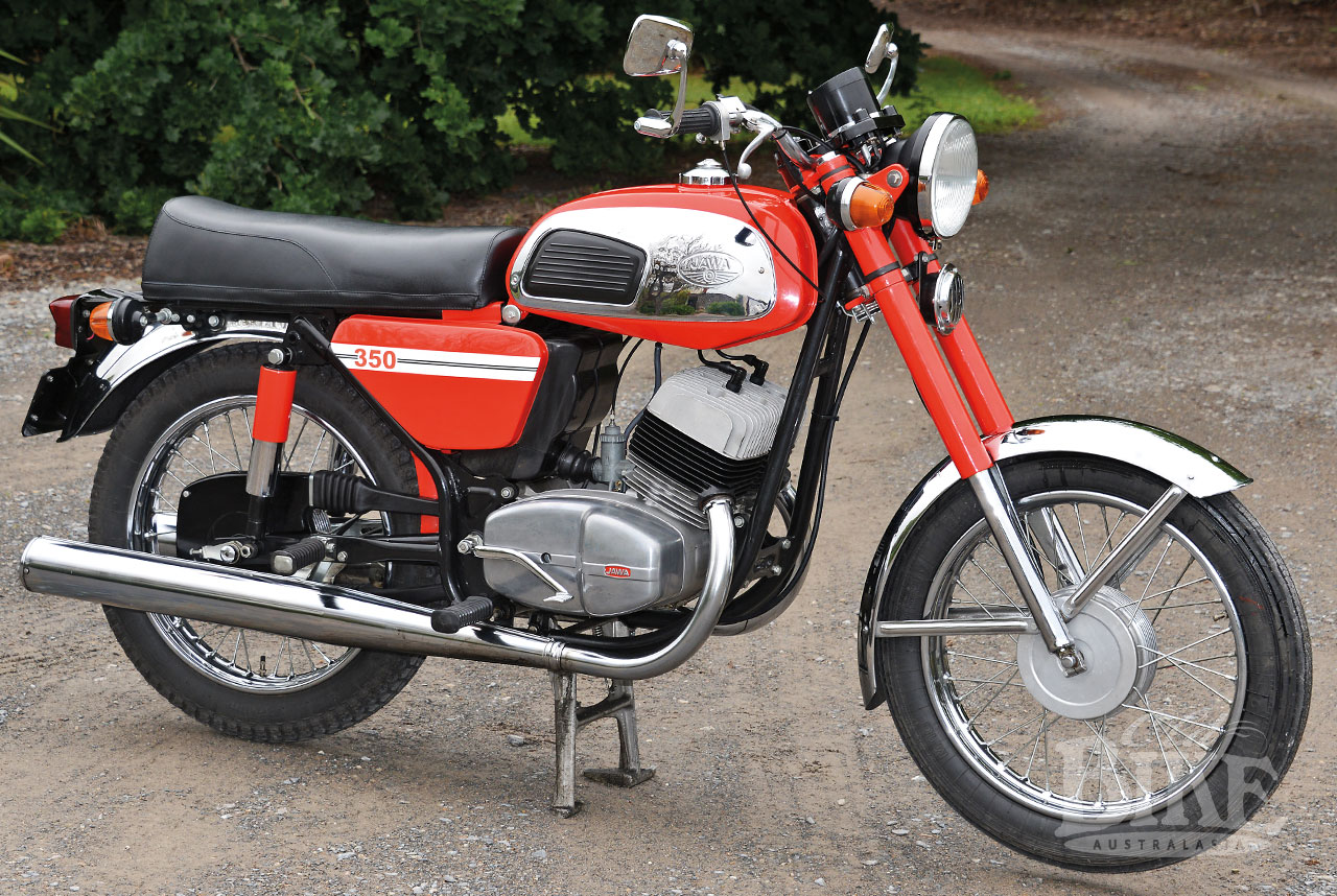 OBA82-JAWA-Californian-7 Instead of the Californian’s single cradle square-section steel tube frame, the Model 634.5 uses round section in a full duplex cradle, resulting in 5kg extra weight. OBA Issue 82