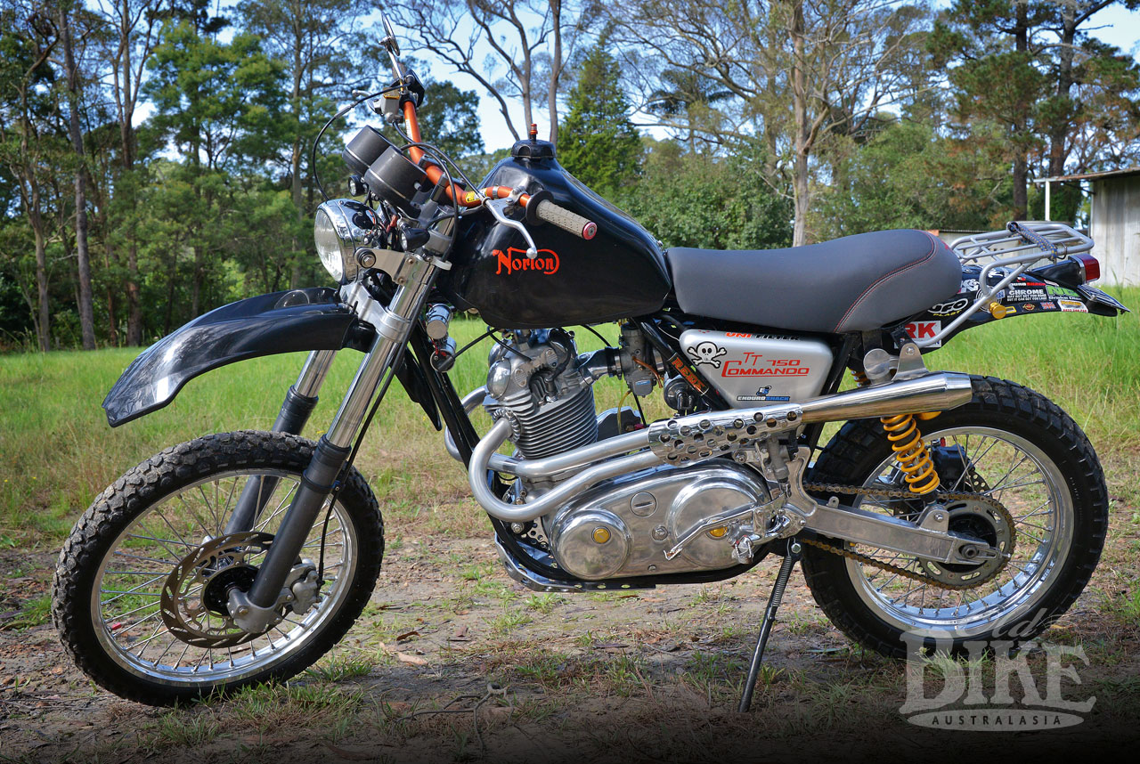 “Does it have a name?” I asked, staring at the most unusual Norton Commando I’d ever seen. “Yes, The Bastard”, replied John Oirbans, the owner and creator of this machine. Not exactly flattering, but I suppose, apt, seeing it literally is, as defined in the Oxford Dictionary, born out of wedlock. Perhaps the inscription on the oil tank cover – TT 750 Commando – is kinder, so we’ll use that for the purpose of this article.
